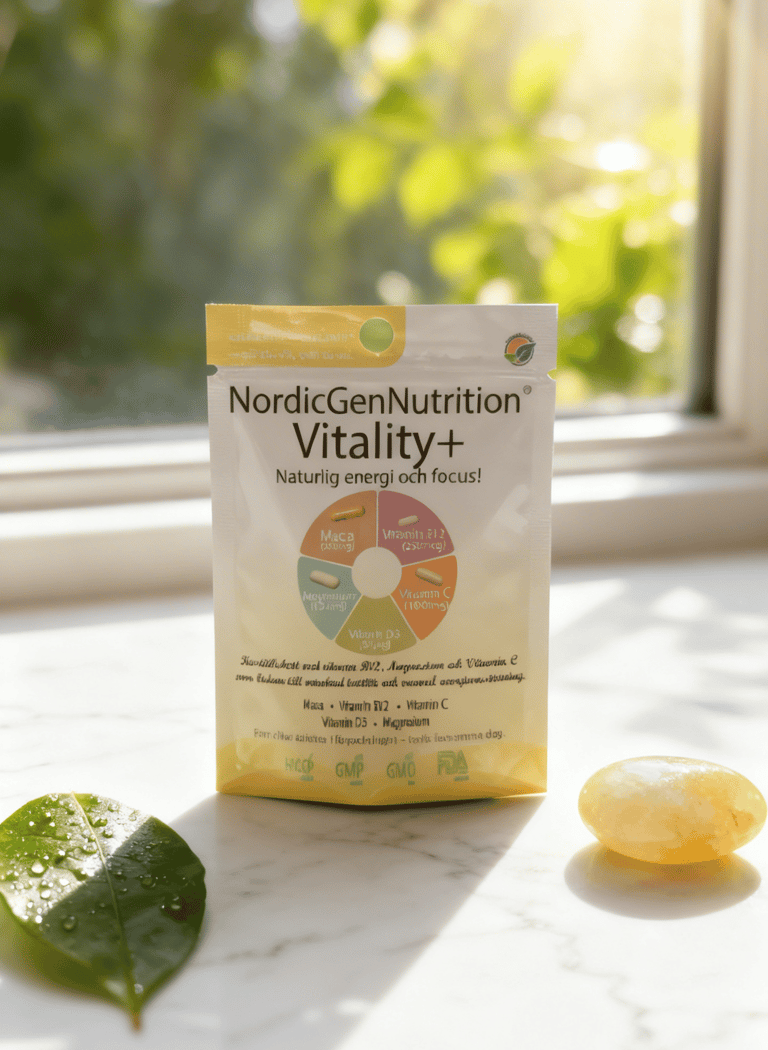NordicGenNutrition Vitality+ är den kompletta grab-and-go-påsen för dig som vill ha naturlig energi och fokus – utan att krångla. Fem noga utvalda tabletter i en liten påse som du enkelt tar med dig.